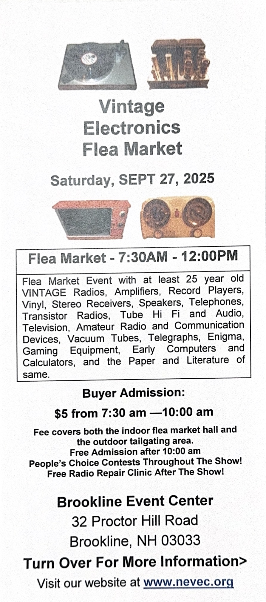 Saturday, September 27 - Vintage Electronic Show & Sale